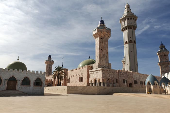 C’est à Touba, ville sainte située à l’Est de la capitale que l’on peut voir l’une des plus grandes mosquées du pays. La mosquée de Touba ne fut commencée qu’en 1932 pour être enfin inaugurée en 1963. Sa construction a été rendue difficile par un contexte politique et économique rugueux, avec notamment la crise économique de 1930 et la seconde guerre mondiale. Elle est connue pour ses 5 minarets exceptionnels, dont le plus élevé culmine à près de 87 mètres de haut.